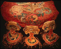 An alternative is to place a carrying strap on a long spear. Place the left foot in the loop of the strap and use it as a step to mount the horse. This is a very easy method and seems to be shown on this intaglio. It is not like using a stirrup since the rider is facing the horse and tries to keep the butt of the spear still in the ground while mounting.