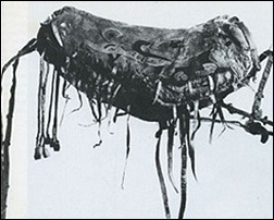 If the spear is twisted it may weaken the join where the butt spike is socketed into the spear. The spear must be held vertically, since holding the spear at an angle will place more strain upon the join between the long sauroter and the spear shaft. The spear is held in the left hand, with a good handful of mane, while the rider pulls himself up into the saddle as the left leg straightens in the leather carrying loop.