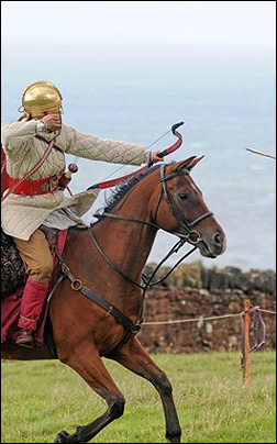 Our riders need to show proficiency with the lancea and spatha, demonstrating forehand and backhand cuts. They also need to be able to charge a fleeing opponent down. They need to be able throw at a target a javelin and a plumbata to the left, right and behind them at speed. They need to be able to shoot a recurve bow from horseback, and ideally use a kontos overarm and underarm.