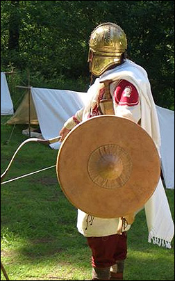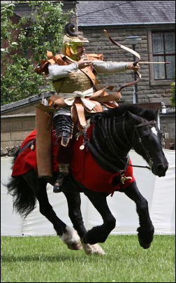 Vegetius says that one quarter to one third of new infantry recruits, tirones, should be exercised as archers or sagittarii. He mentions wooden bows for training, suggesting that simple self-bows formed from one single piece of wood were used. It is not possible to be sure about the form of Roman self-bows. It is likely that Romans trained with long bows, similar to those found in Germanic lake deposits made from yew or fir. Different woods and materials are capable of storing varying amounts of energy, yew being the ideal wood for a bow. Some of these bows were self-nocked, with a second set of nocks cut into the stave. This has been interpreted as a way of shortening the string and increasing the power of the bow. But rather the outer set of knocks probably served for a stringer. Holding the bow horizontally the archer attaches a long length of string, the stringer, to the two outer nocks. By standing on the stringer and raising the bow to his chest a second man can slip the bow string over the inner nocks.In combat the Roman military used the composite bow. This was based around a wooden core, upon which animal sinew and horn had been carefully glued producing a recurved shape. “Ears” were then attached to the ends of the bow, protected by bone or antler. These acted as levers for the flexible parts of the limbs. Laths on the grip stiffened the bow handle to prevent it flexing and bucking when the string returned to rest after release. Archaeologists have discovered these bone ear laths in several sites around Britain, Europe and Asia. To stop the glue breaking down in damp conditions, the limbs of the bow were waterproofed using bark and coated in lacquer. Recurved bows were produced for the Western Empire in fabricae near Pavia. In the East where such bows were more common the army could probably buy them on the open market. The recurved bows are shorter than the self-bows, allowing them to be used kneeling or on horseback. The materials used transfer more power from the bow to the arrow, making the bow more efficient.