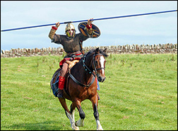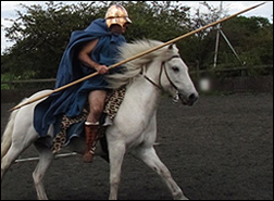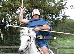 Typically around 12 foot long, perhaps carried one-handed but used in two hands to fight. The kontos or "barge pole" may have been developed by nomad steppe peoples ( e.g. Massagetae) after encountering Alexander's cavalry, and later adopted by Hellenistic heavily armoured cavalry, the 'kataphraktoi'. It was adopted by some Roman cavalry around AD 100 as the contus after contact with the Parthians. It was probably heavier than the xyston with a thicker shaft, and less likely to break. It would need to be used two handed.